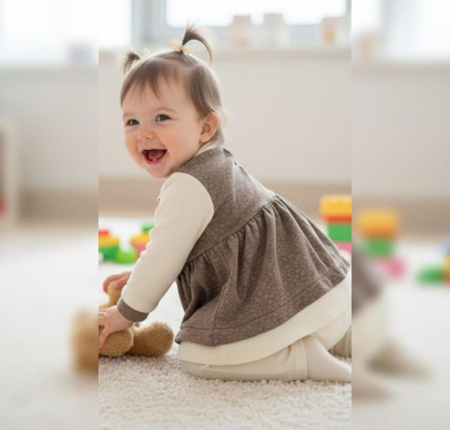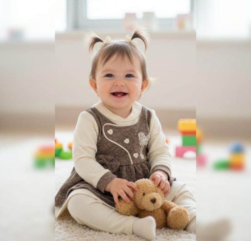 Elevate your little girl's wardrobe with this elegant 2-piece coordinated set. Featuring a cream-colored, long-sleeve base layered with a beautiful mocha brown quilted tunic, this outfit blends warmth with sophisticated style.