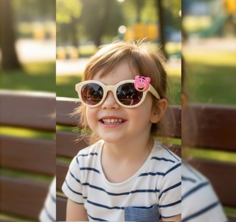 Add a pop of fun to your little one’s outfit with these adorable character sunglasses. Designed with a creamy beige frame and a cute 3D Lotso bear mascot, these shades are the perfect blend of style and whimsy. Lightweight yet durable, they provide a comfortable fit for all-day adventures under the sun.