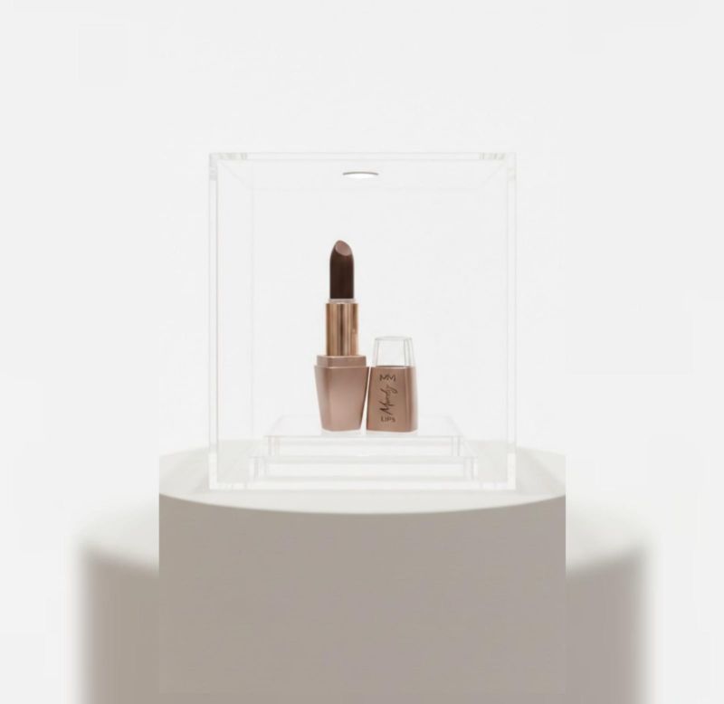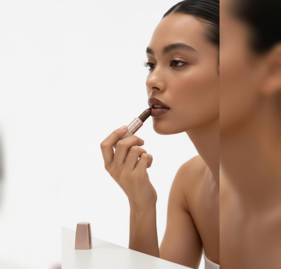 Form Factor: A classic bullet lipstick shown in an open position. The cap is placed neatly beside the base.
