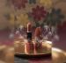 Placement: The items are resting on a polished gold or brass circular tray, which has a hammered texture that reflects the light.