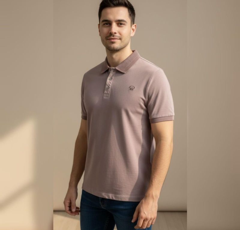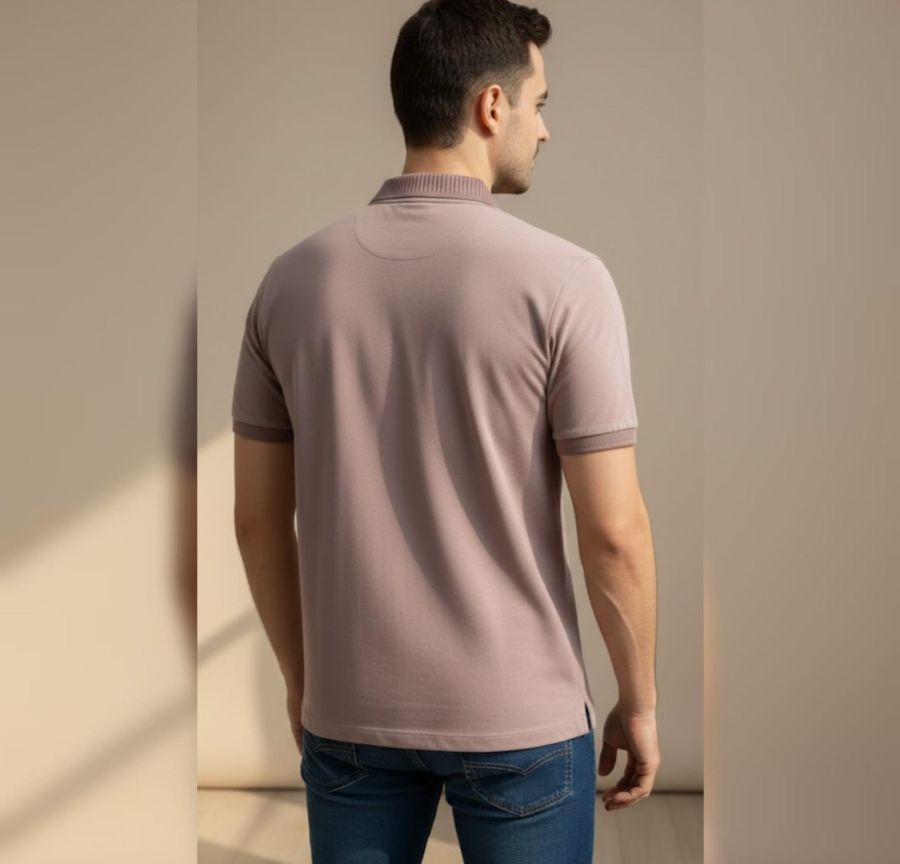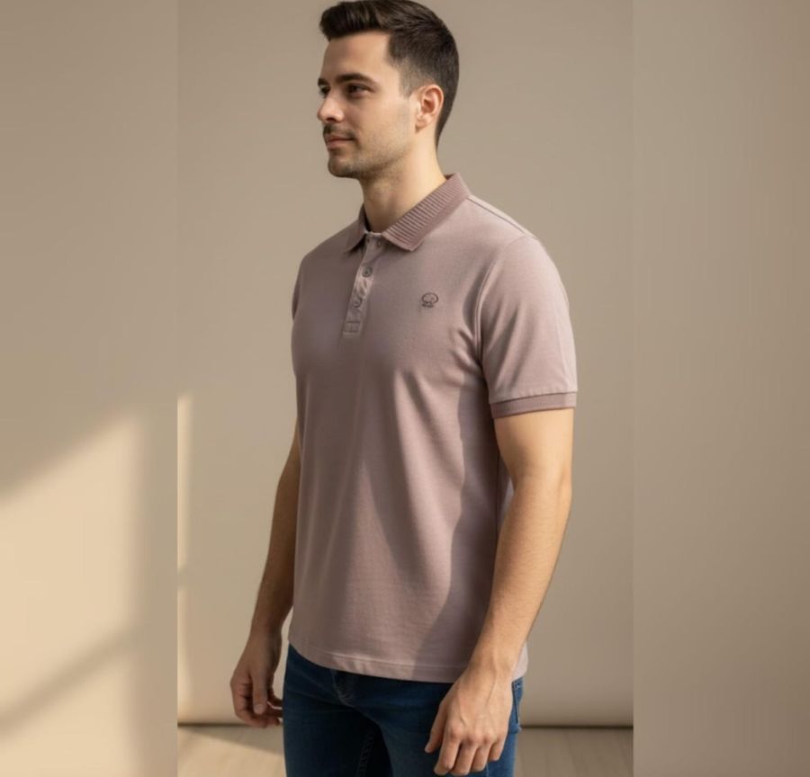 Elevate your daily style with the Mauve Horizon Textured Polo. This piece features a unique muted mauve-pink body that offers a contemporary alternative to traditional neutrals. The design is highlighted by a distinctive ribbed-texture collar and a classic three-button placket. Finished with a minimalist tonal chest emblem and matching ribbed cuffs, this polo provides a clean and polished silhouette.