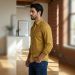 Why it works: The mustard shirt becomes the "pop" of color against an otherwise dark outfit.