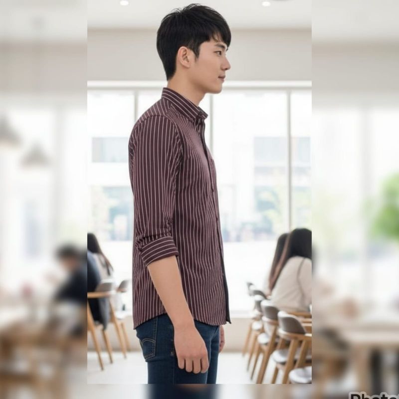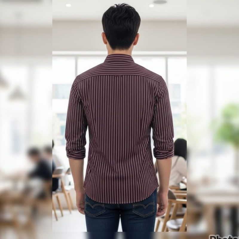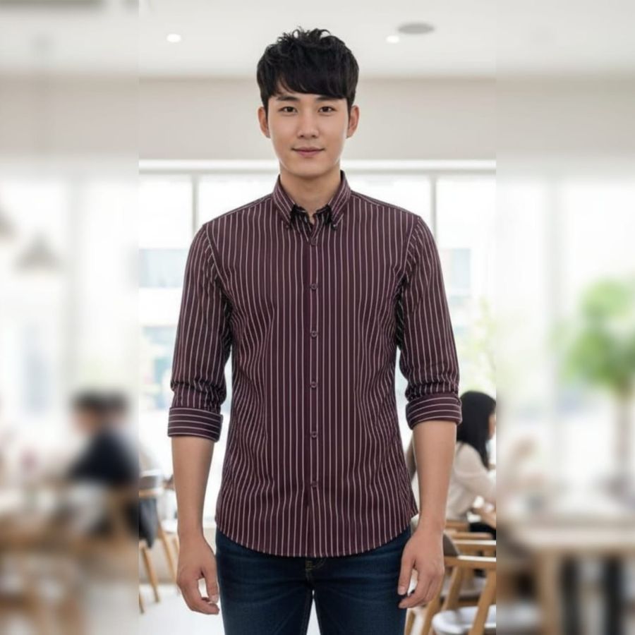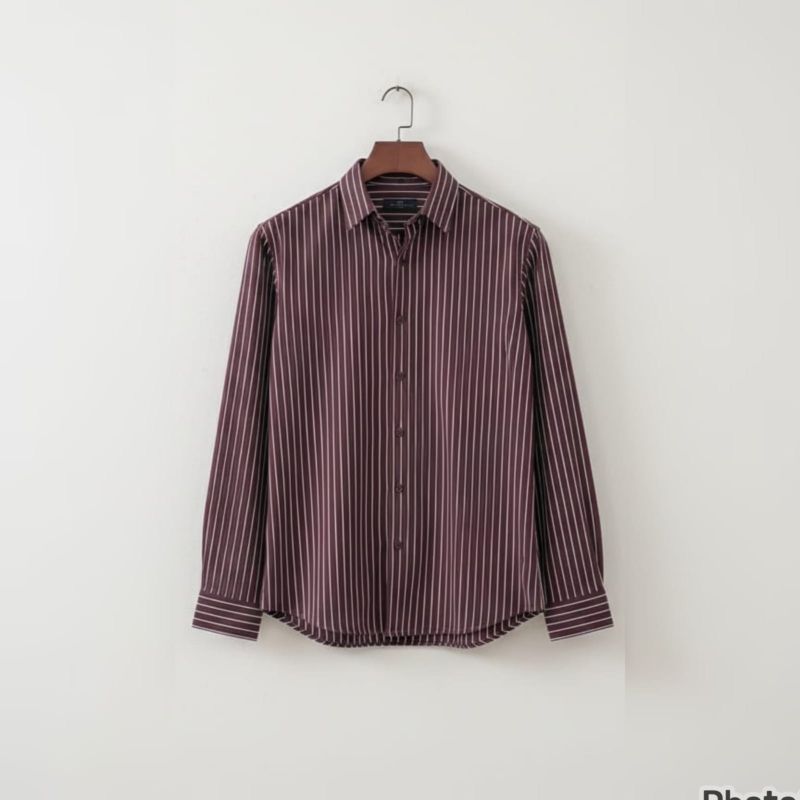 This is a classic, sophisticated long-sleeved button-down shirt that balances a rich color palette with a clean, structured design.