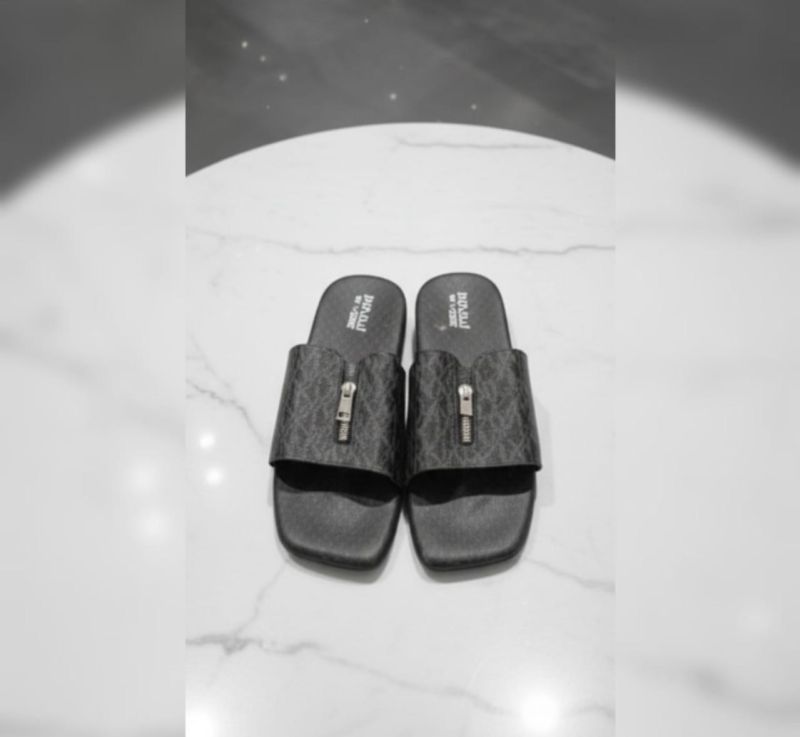 Elevate your casual footwear collection with these sophisticated slide sandals. Featuring a sleek monogram print upper and a distinctive vertical zipper embellishment, these slides blend high-fashion aesthetics with everyday comfort. The contoured footbed is designed for long-wear support, while the textured outsole ensures a non-slip grip. Perfect for poolside lounging or modern urban streetwear.