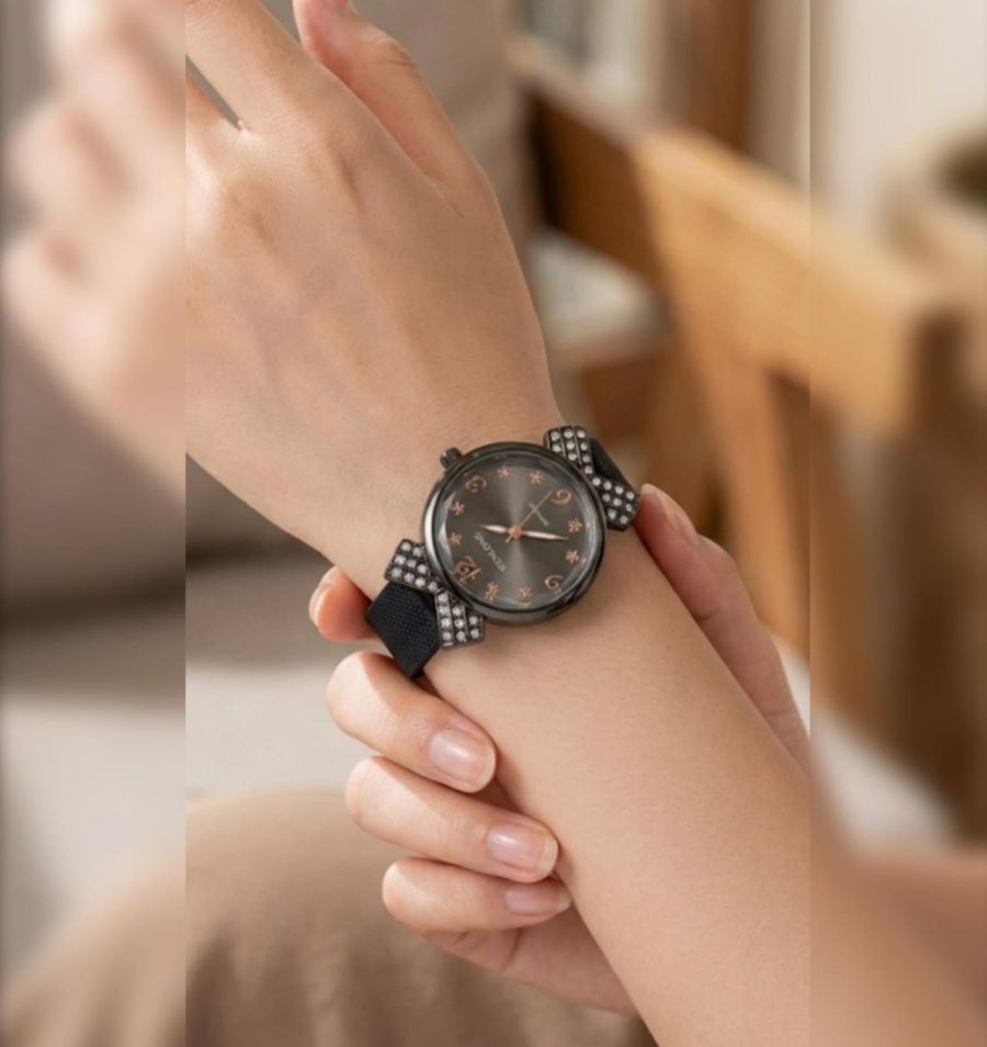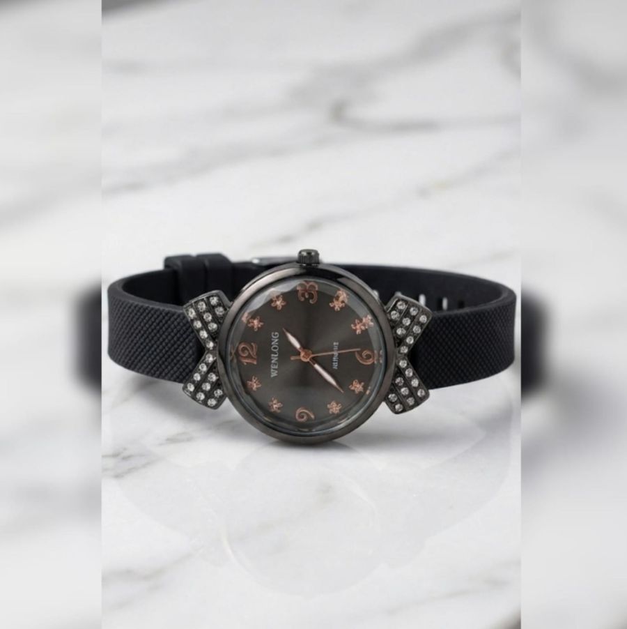 Elevate your everyday style with the Midnight Ribbon watch. Featuring a sleek, charcoal-grey sunray dial and a flexible matte-black silicone strap, this watch blends comfort with high-fashion flair.
