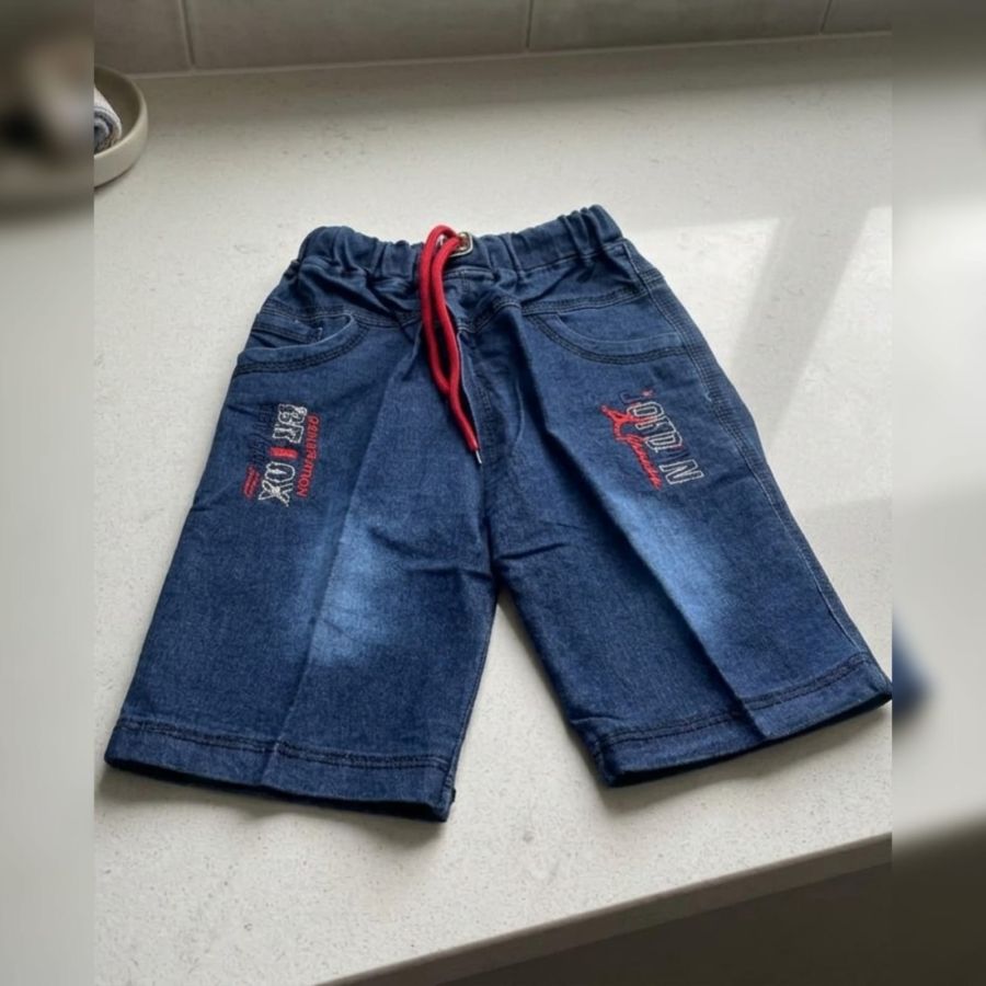 Those are some classic-looking denim shorts! They’ve got that sporty vibe with the red drawstring and the "Jordan" inspired embroidery.