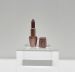 Presentation: The lipstick is displayed on a clear, acrylic rectangular pedestal against a clean, minimalist white-to-grey gradient background.