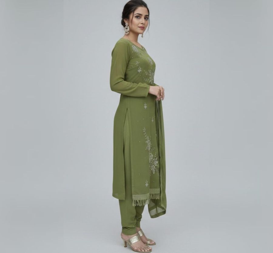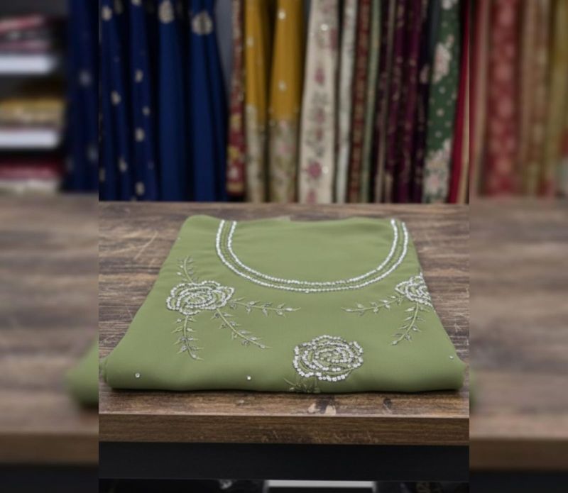 Elevate your ethnic wardrobe with our "Noor-e-Zubeda" Gorgette series. This collection features high-quality unstitched fabric with intricate floral embroidery, delicate sequin work, and elegant border detailing. Available in three sophisticated shades, these suits are designed for grace and versatility.