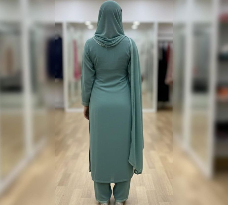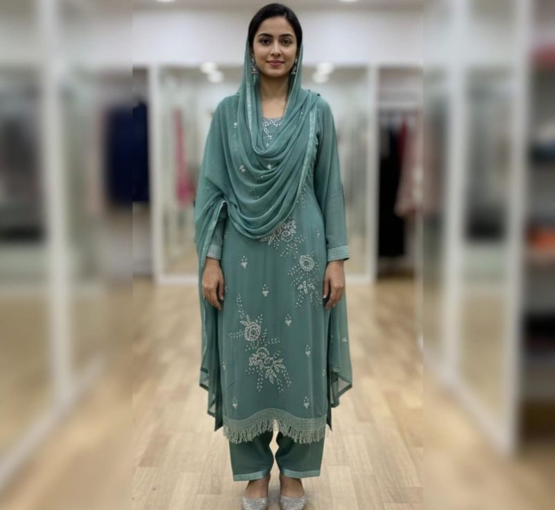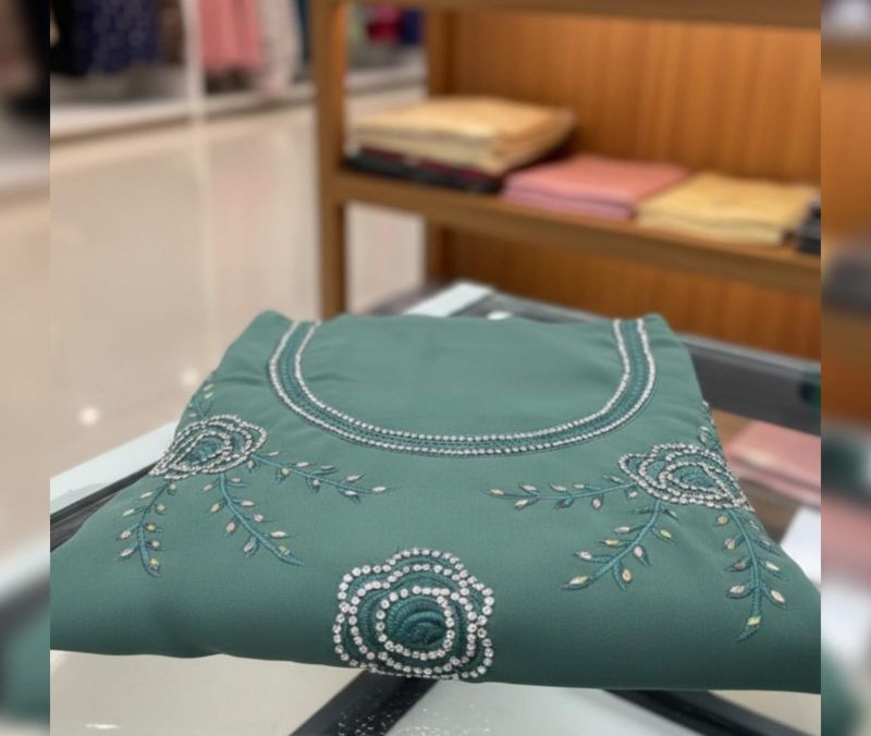 Elevate your ethnic wardrobe with our "Noor-e-Zubeda" Gorgette series. This collection features high-quality unstitched fabric with intricate floral embroidery, delicate sequin work, and elegant border detailing.