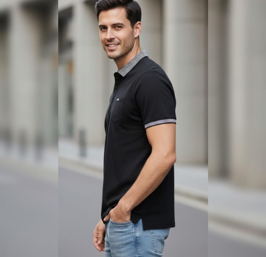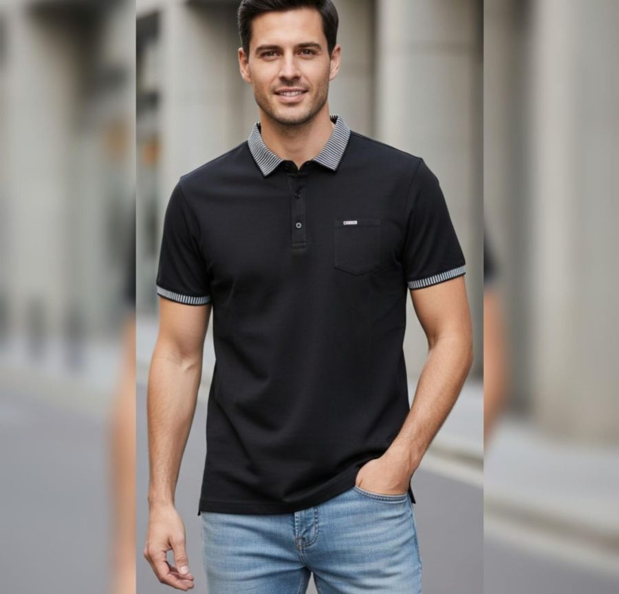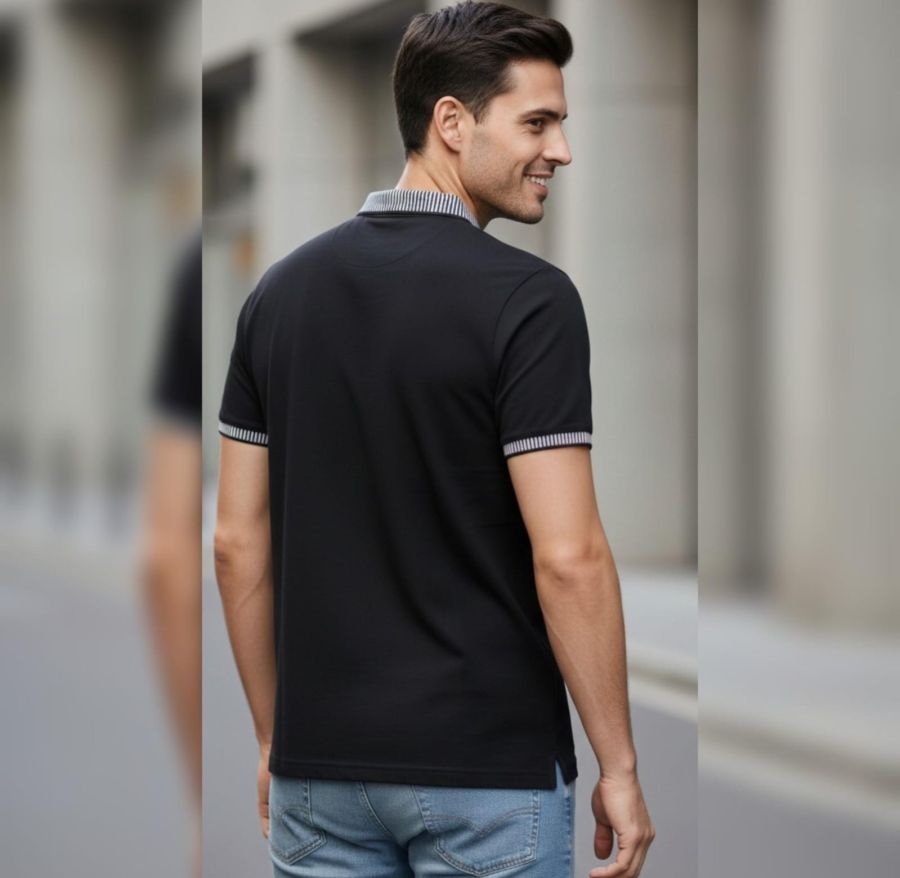 Elevate your everyday look with the Obsidian Stripe Executive Polo. This premium garment is rendered in a deep, classic black that offers a timeless and professional appearance.