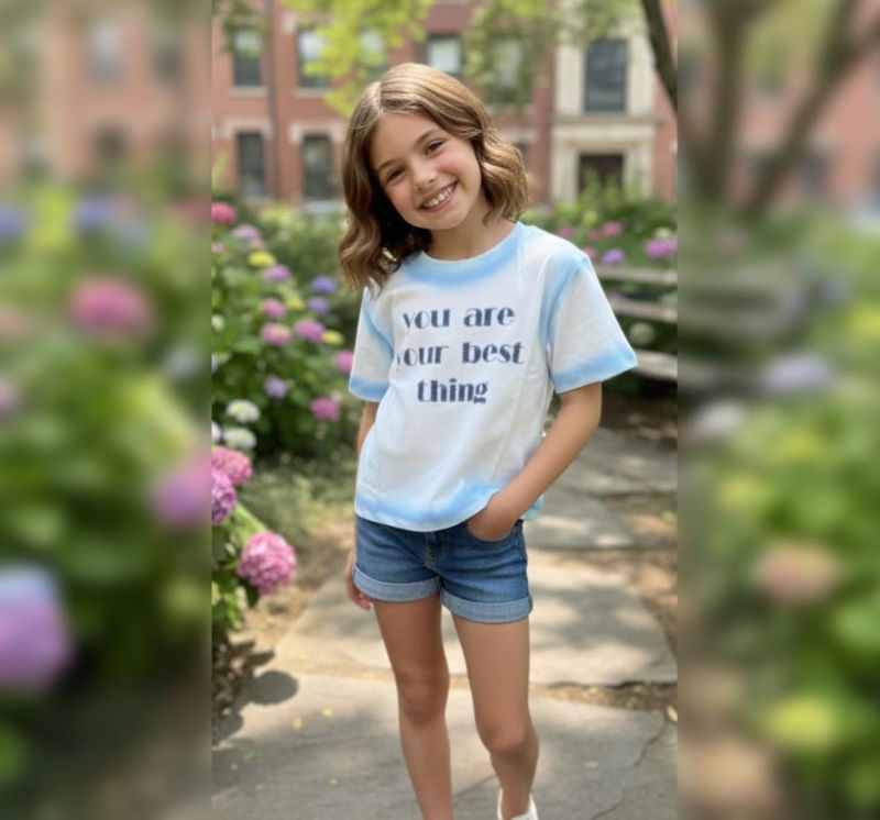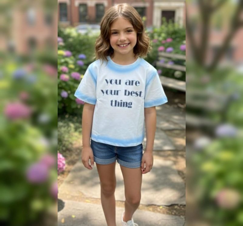 The "Best Thing" Graphic Tee is a stylish and uplifting addition to any wardrobe. Featuring a soft white base with subtle blue ombre/tie-dye accents around the collar and hem, it combines comfort with a positive statement.
