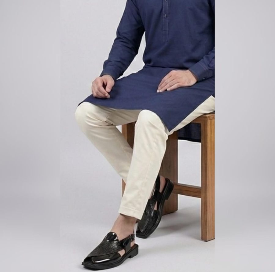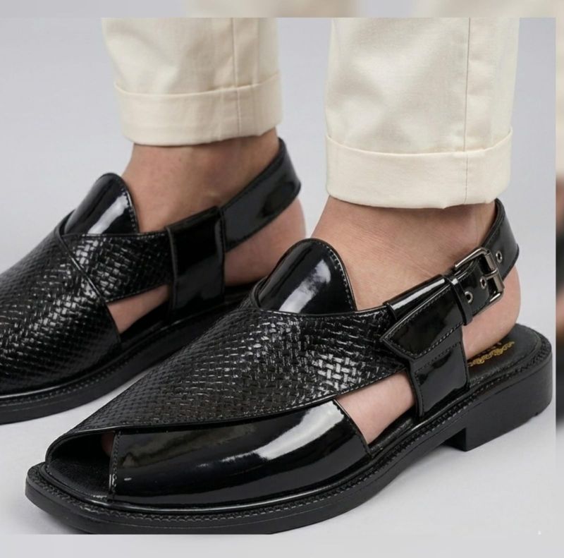Structure: It maintains the classic semi-closed toe and adjustable heel strap that the Peshawari style is known for, but with a more structured, "boxy" sole that feels very contemporary.
