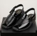 Material: It features a striking contrast between patent leather (the glossy, mirror-like finish) and a textured, woven-style leather on the cross-straps.