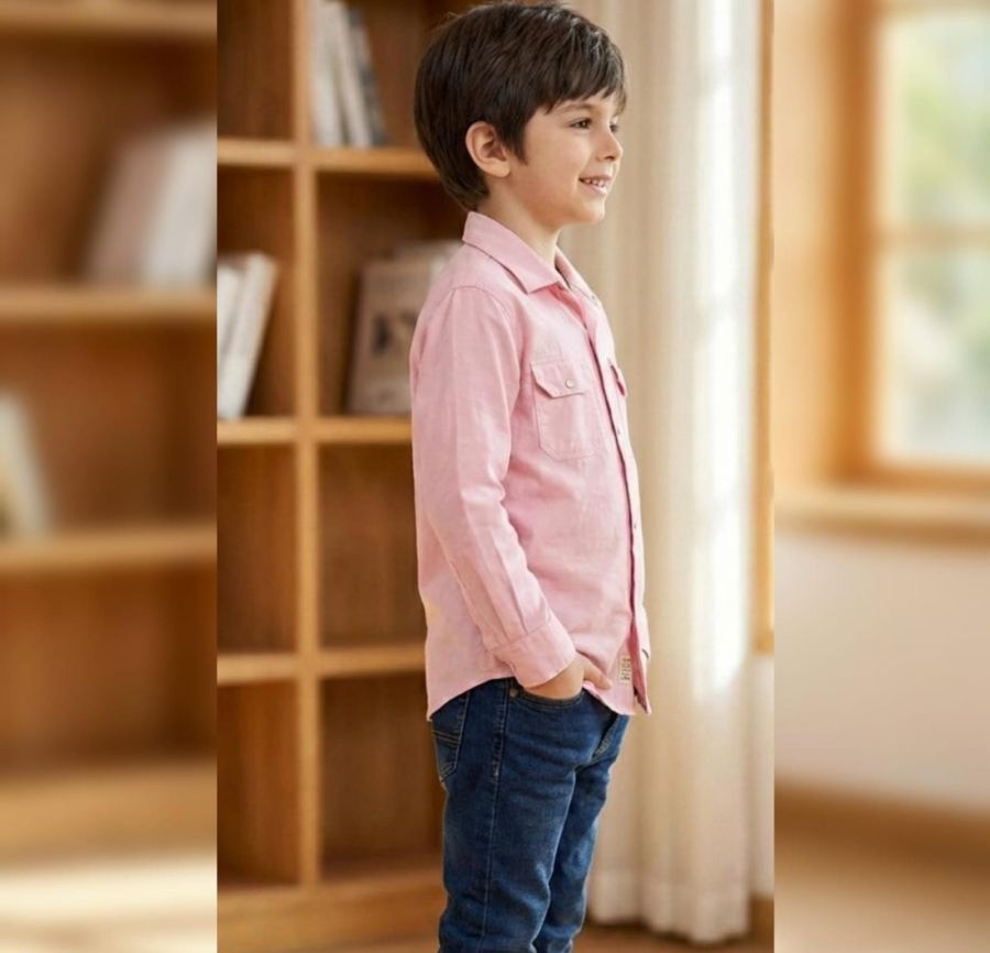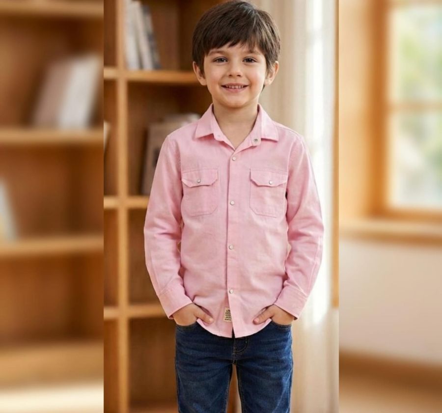 This shirt is a classic pink utility-style button-down, perfect for balancing a smart look with a rugged edge for young boys. Based on the image, here are the stylistic details and a general size guide to help you choose the right fit.