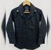 Color & Fabric: A solid, deep jet black. The fabric appears to be a crisp, smooth cotton or cotton-poly blend, which holds its shape well for formal occasions.