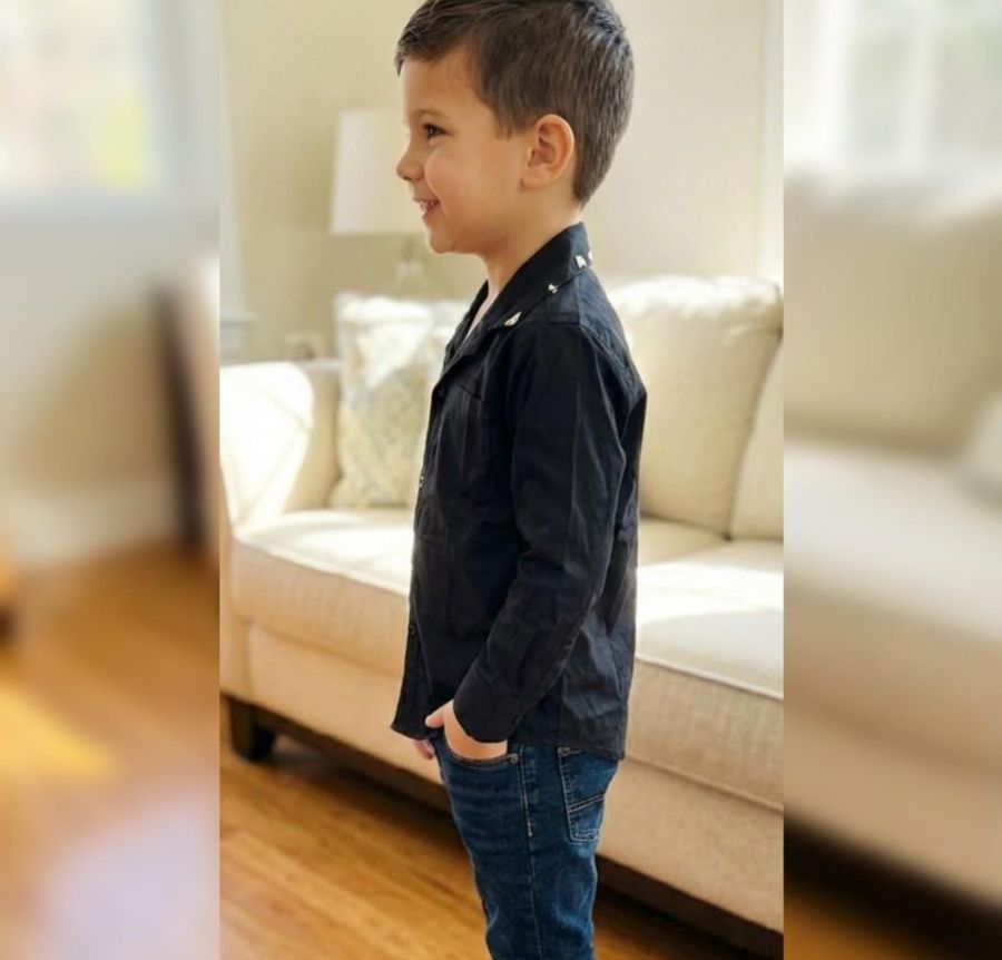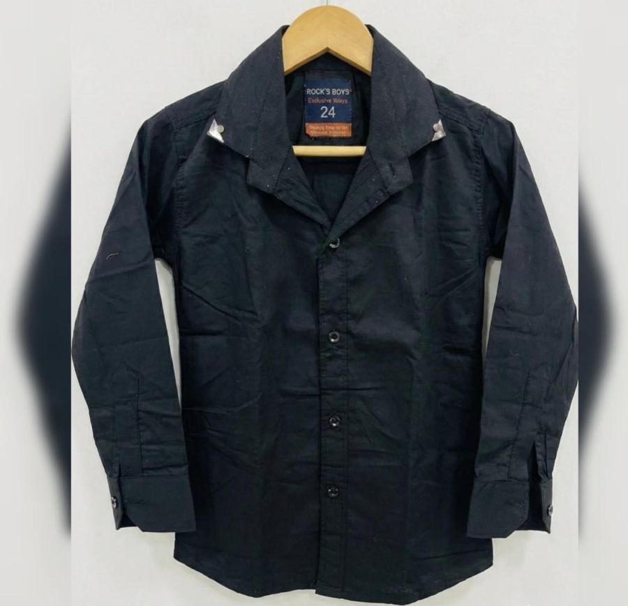 Collar Design: Features a unique, wide spread collar that sits flatter than a standard shirt. The collar tips are accented with silver metallic triangular hardware, adding a modern "designer" touch.