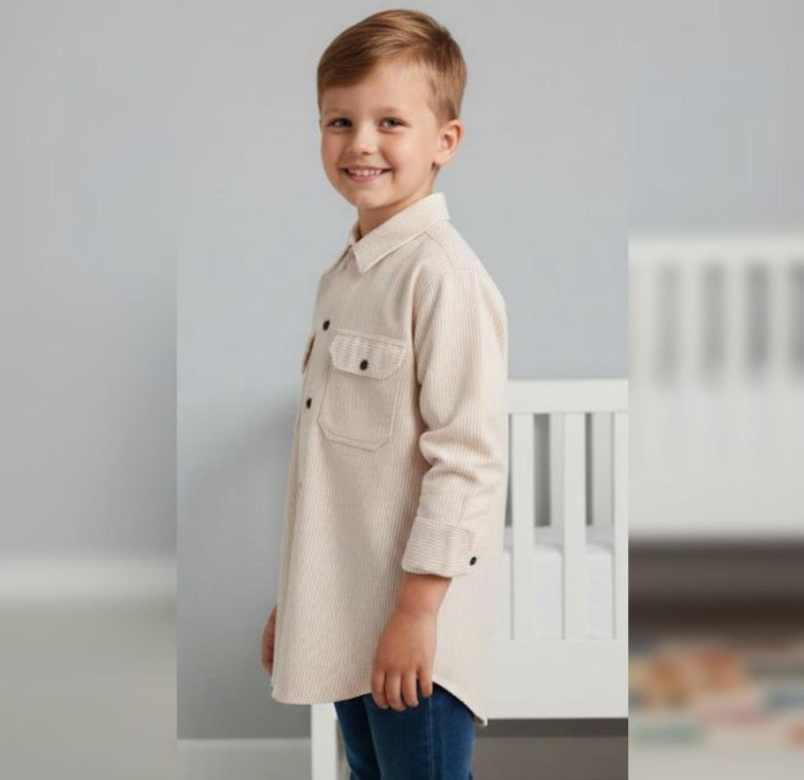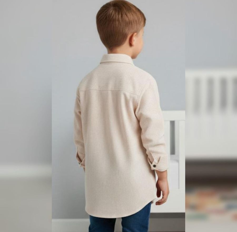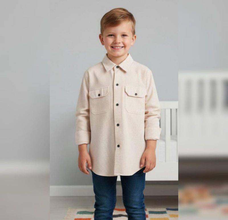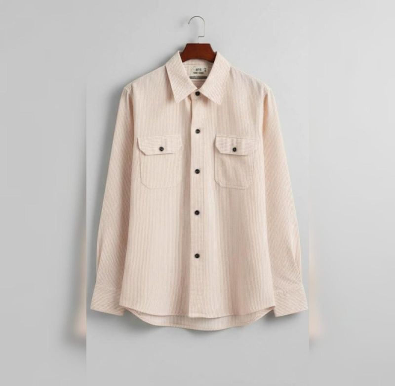This is a classic pinstripe corduroy utility shirt, perfect for a smart-casual look. It blends the ruggedness of a work shirt with a refined, soft texture.