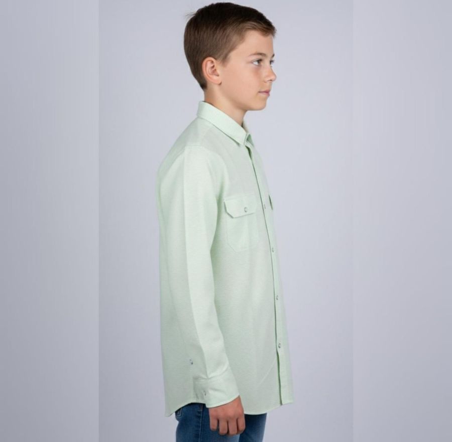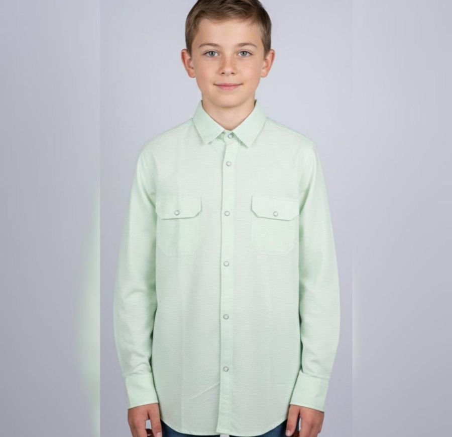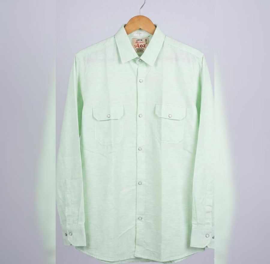 That’s a sharp, mint-green button-down! It looks like a versatile piece with a nice utility/workwear vibe thanks to those double chest pockets.