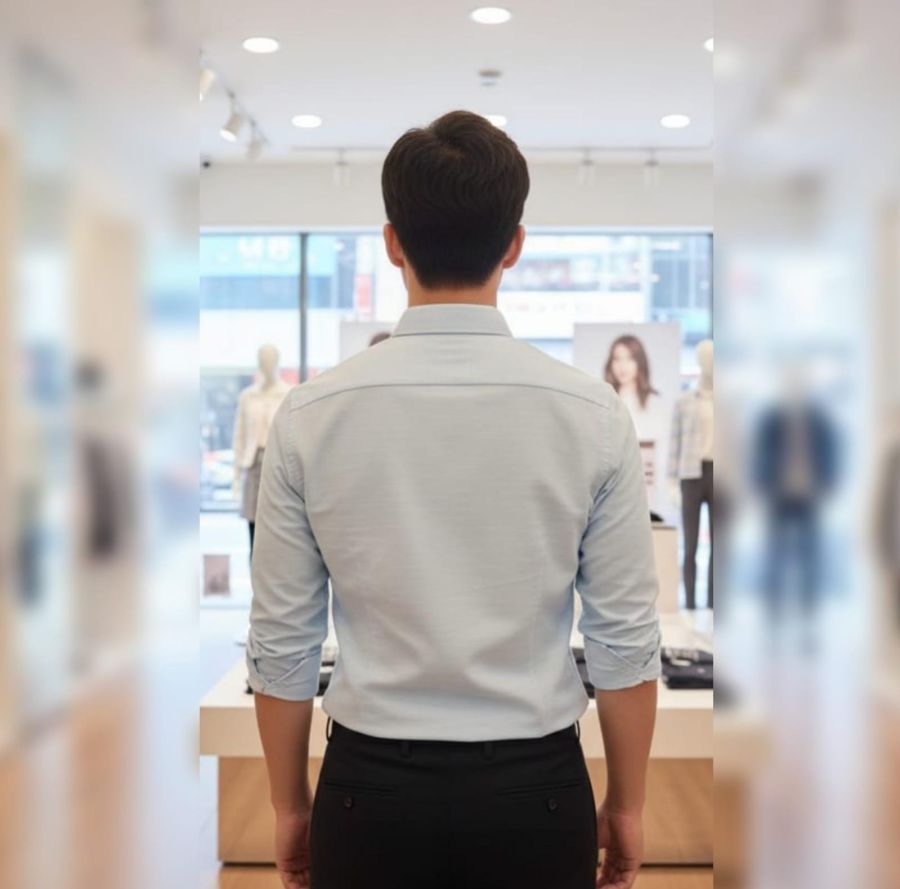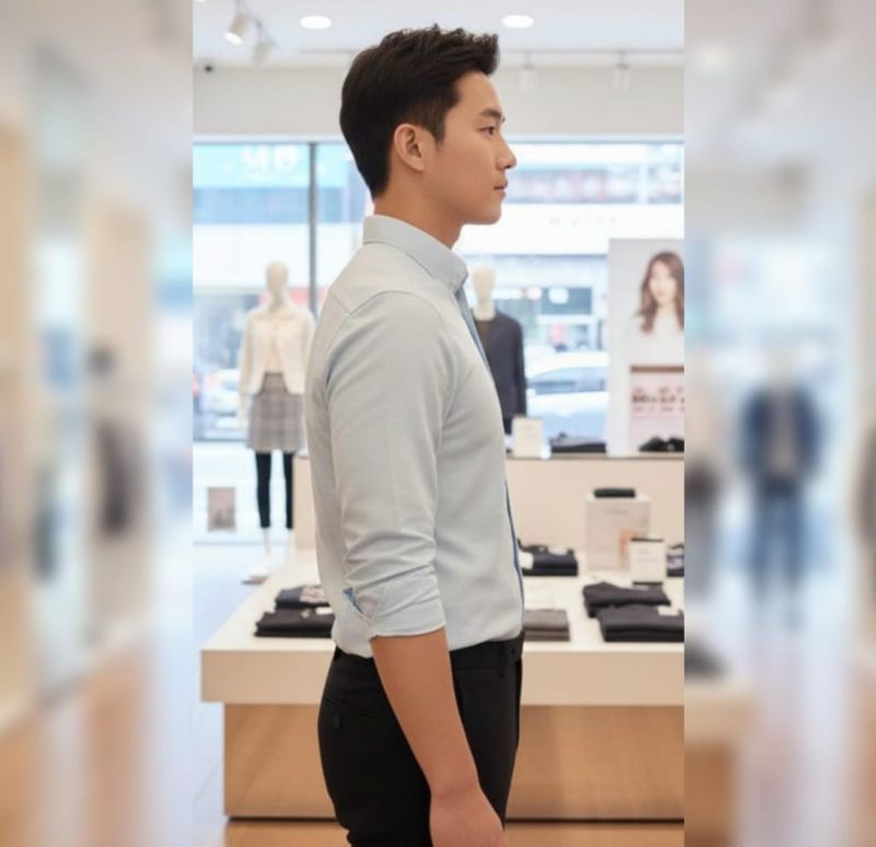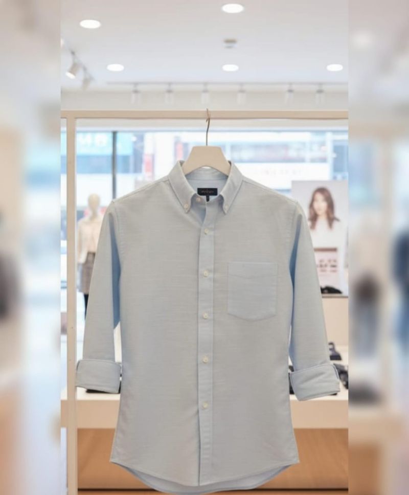 This is a button-down Oxford shirt in a light, refreshing palette. It features a structured yet relaxed fit, perfect for layering or wearing on its own.