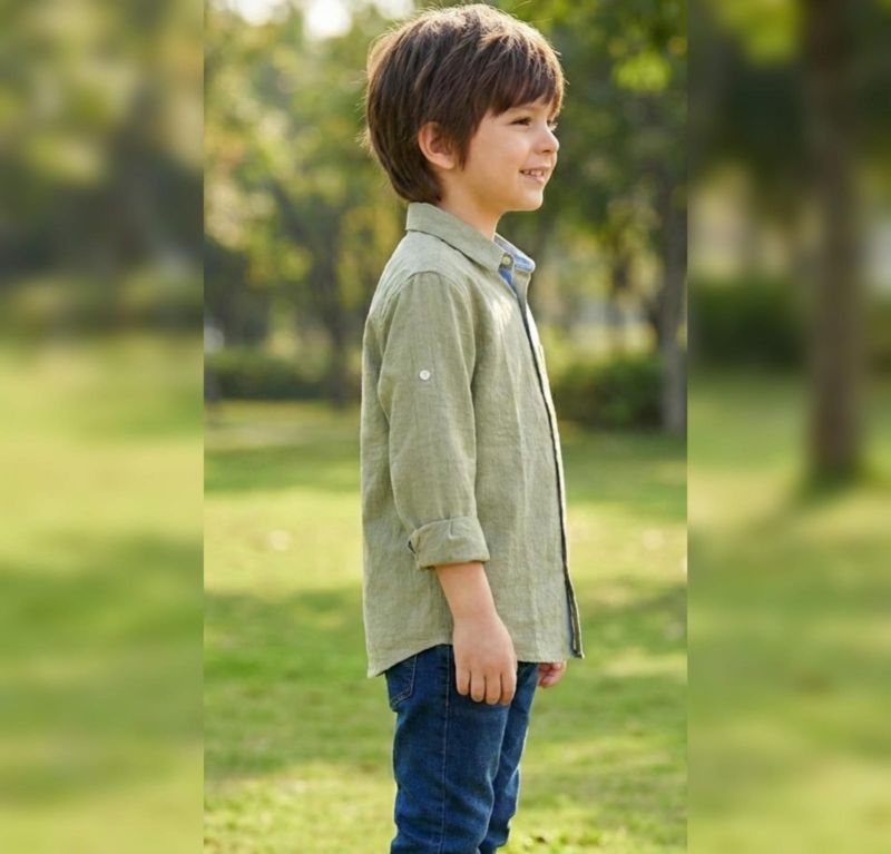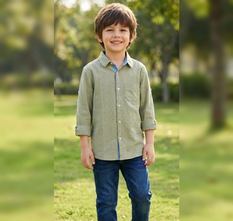 Style: Long-sleeved with a roll-tab feature (buttons on the sleeves all