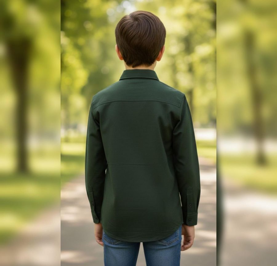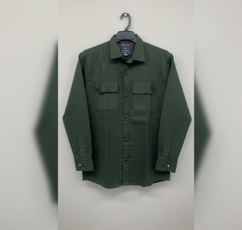 This is a classic utility-style shirt in a deep forest green. It has a more rugged, outdoorsy feel compared to the white shirt you shared earlier, thanks to the double chest pockets and structured fabric.