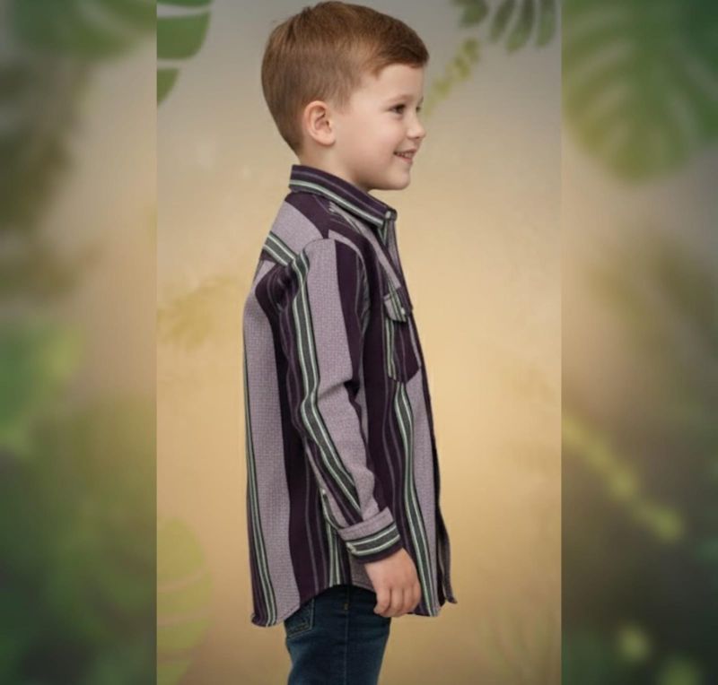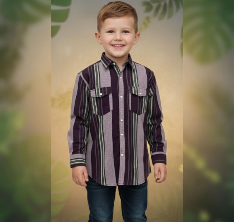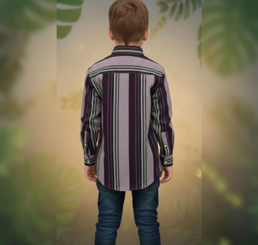 Make a sophisticated impression with the Plum Amethyst Geo-Stripe Shirt. This premium long-sleeve shirt features a multi-tonal panel design, blending deep plum purple sections with textured lavender areas and vibrant green-white vertical stripes.