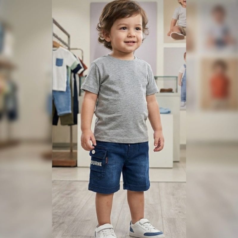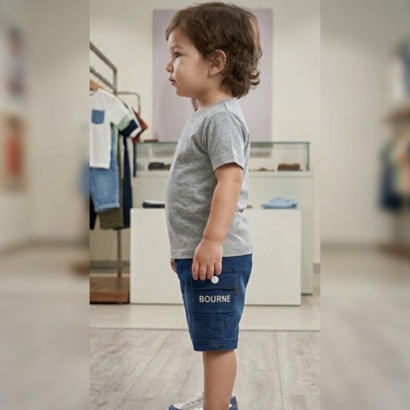 Crafted from soft, kid-friendly denim, these Bourne Collection Cargo Shorts offer a perfect blend of durability and style. Featuring a modern washed finish and a convenient side cargo pocket, they provide a comfortable fit for all-day play. The adjustable drawstring ensures a secure and customized fit for toddlers.
