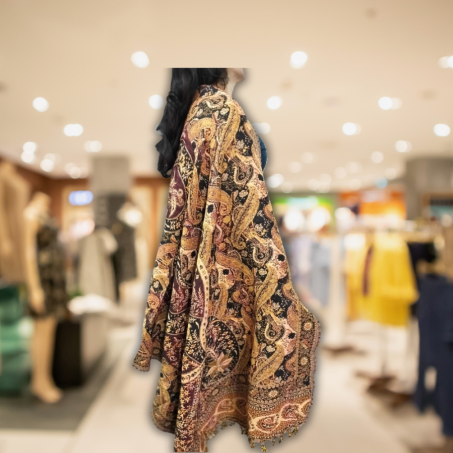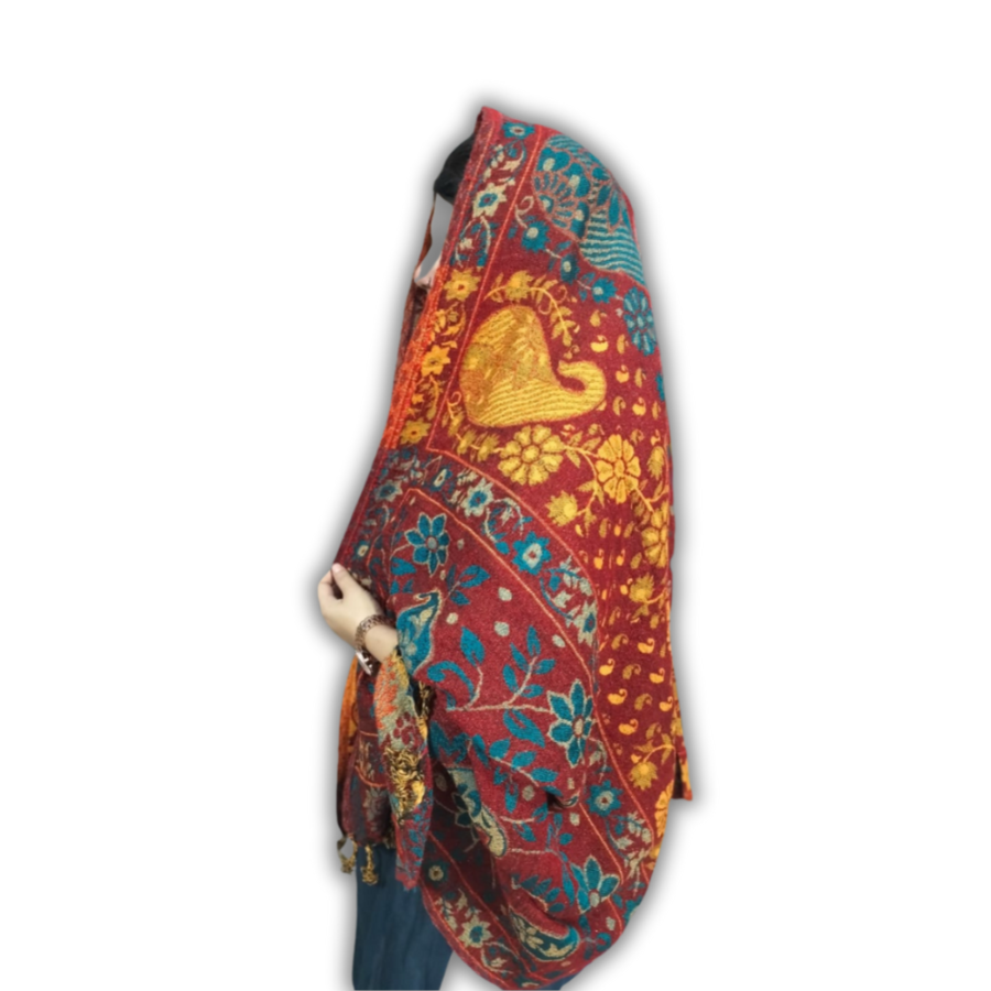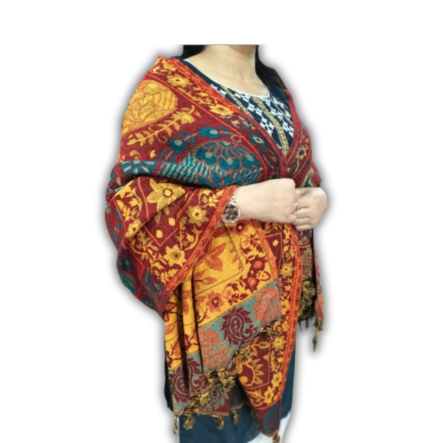 Luxurious Multi-Color Woolen Shawl featuring intricate traditional patterns, crafted from premium soft wool for warmth and elegance.
