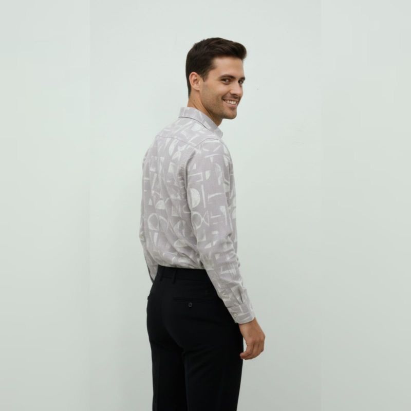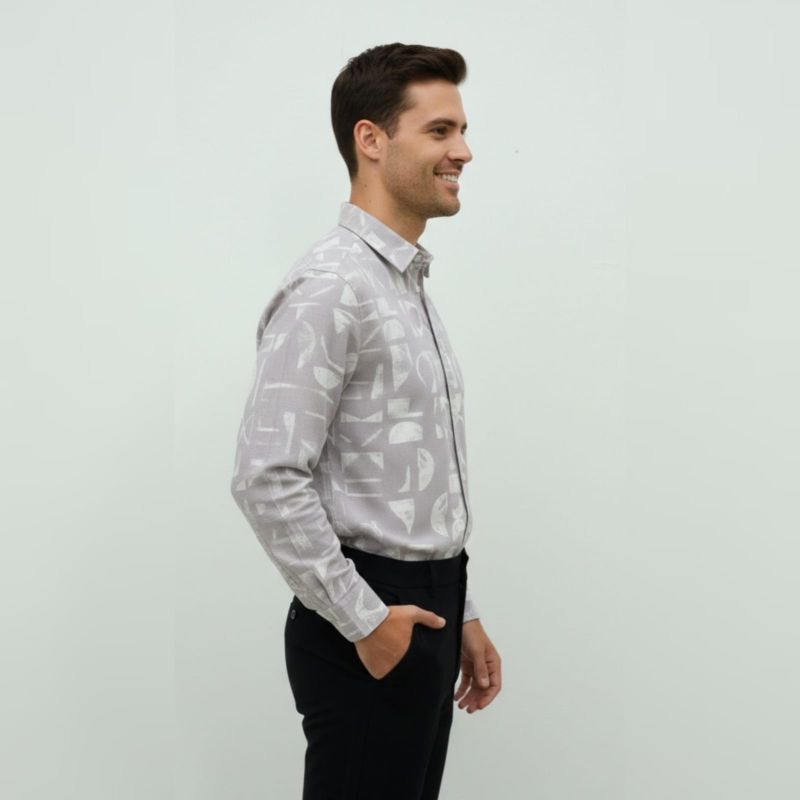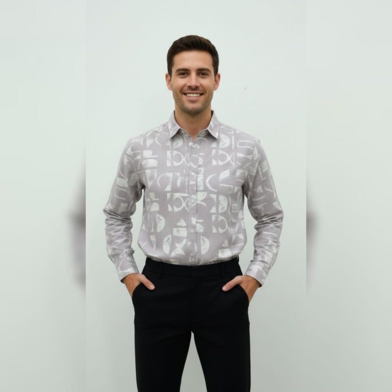 This is a modern, long-sleeved button-down shirt that blends contemporary graphic design with a classic silhouette. It’s a versatile piece that leans into the "streetwear-meets-smart-casual" aesthetic.