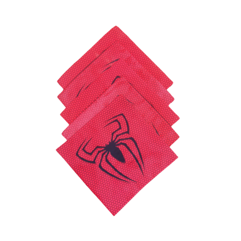 Bold Pink Polyester Cushion Cover with Striking Black Spider Logo.