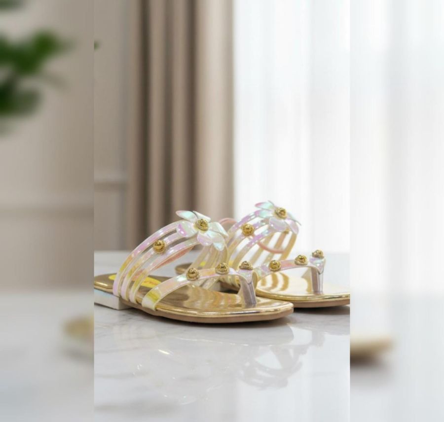 Step into a world of fantasy with the Prism Petal sandals. These stunning party-wear heels feature iridescent, holographic straps that shimmer with every movement.