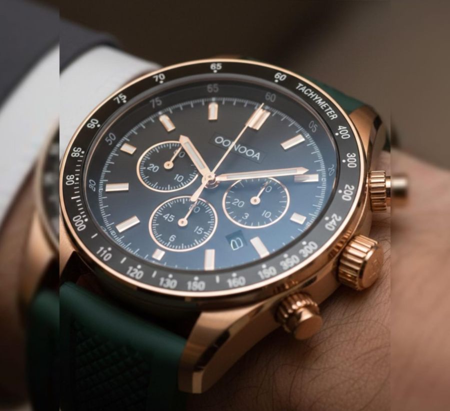 ommand the room with the Onyx Rose Tachymeter, a premium chronograph designed for the modern professional. This timepiece features a sophisticated Deep Charcoal dial housed in a brilliant Polished Rose Gold-tone case.