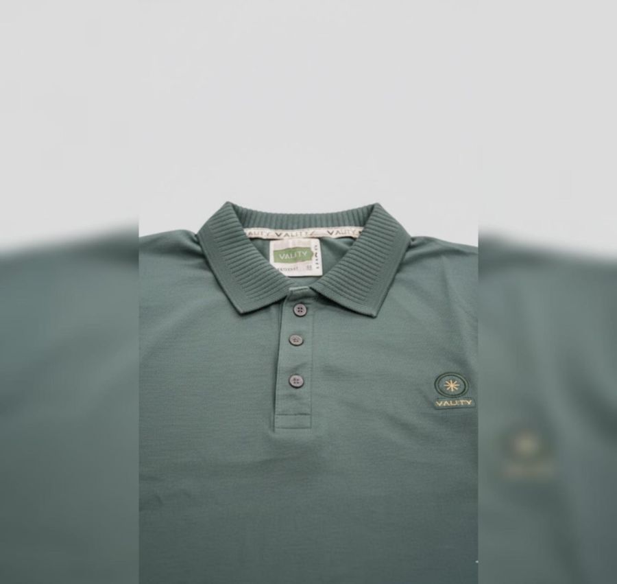 Elevate your daily style with the Sage Horizon Textured Polo. This piece features a unique muted sage-green body that offers a contemporary alternative to traditional neutrals. The design is highlighted by a distinctive ribbed-texture collar and a classic three-button placket.
