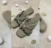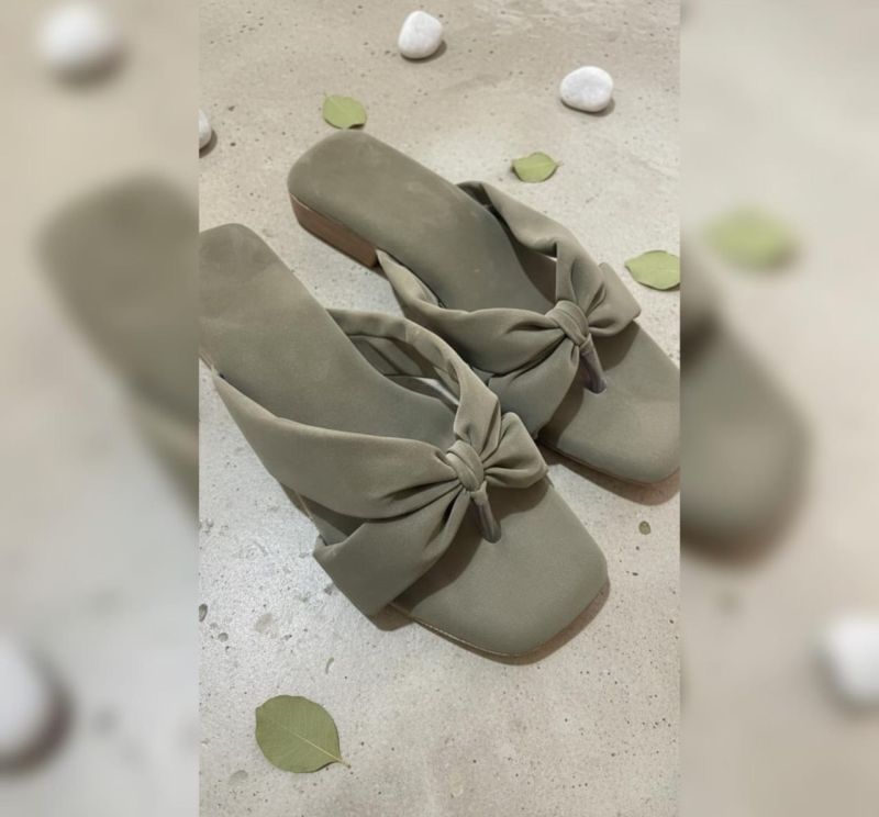 These chic slides feature a modern square-toe silhouette and a soft, draped fabric upper designed in an elegant knotted bow style. The muted monochrome palette and sleek profile make them a versatile staple for the modern minimalist.