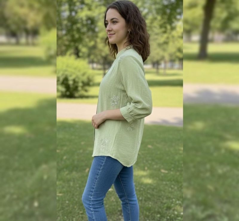 This top has a very fresh, breezy aesthetic that works perfectly for casual outings or a smart-casual office environment. Here is a professional product breakdown and description you can use for your listing.