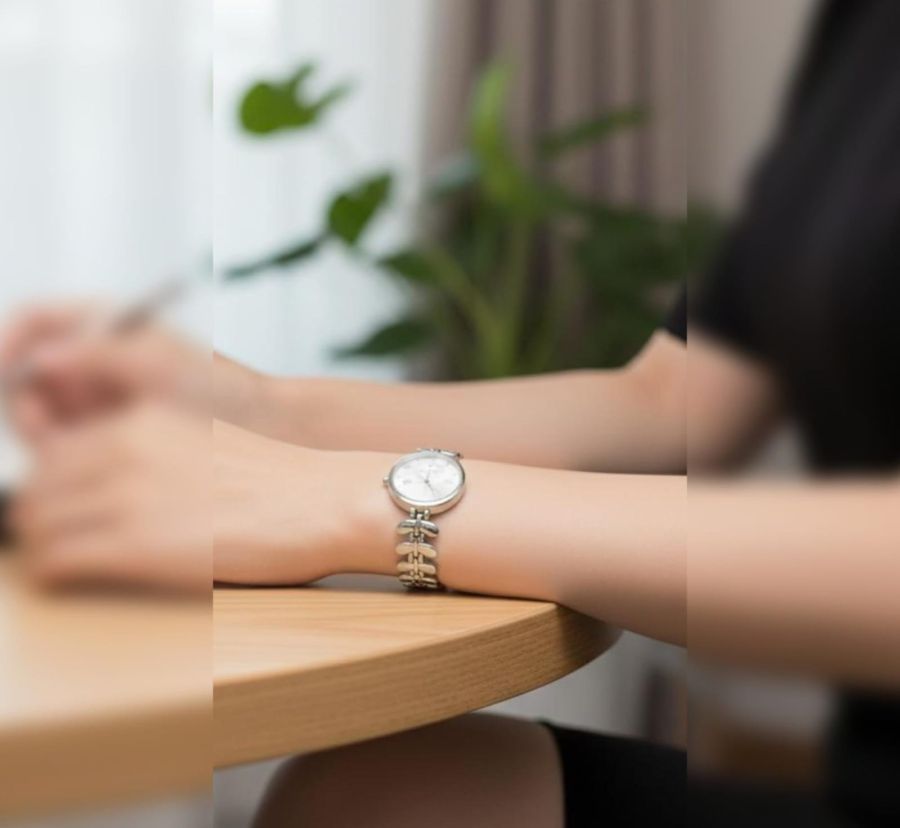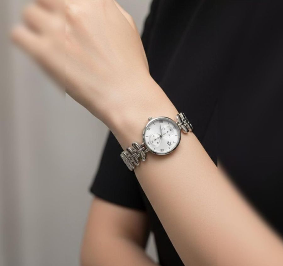 Elevate your everyday style with this exquisite Silver-Tone Bracelet Watch. Designed for the modern woman who appreciates classic elegance, it features a unique etched-link band that mimics the beauty of nature.