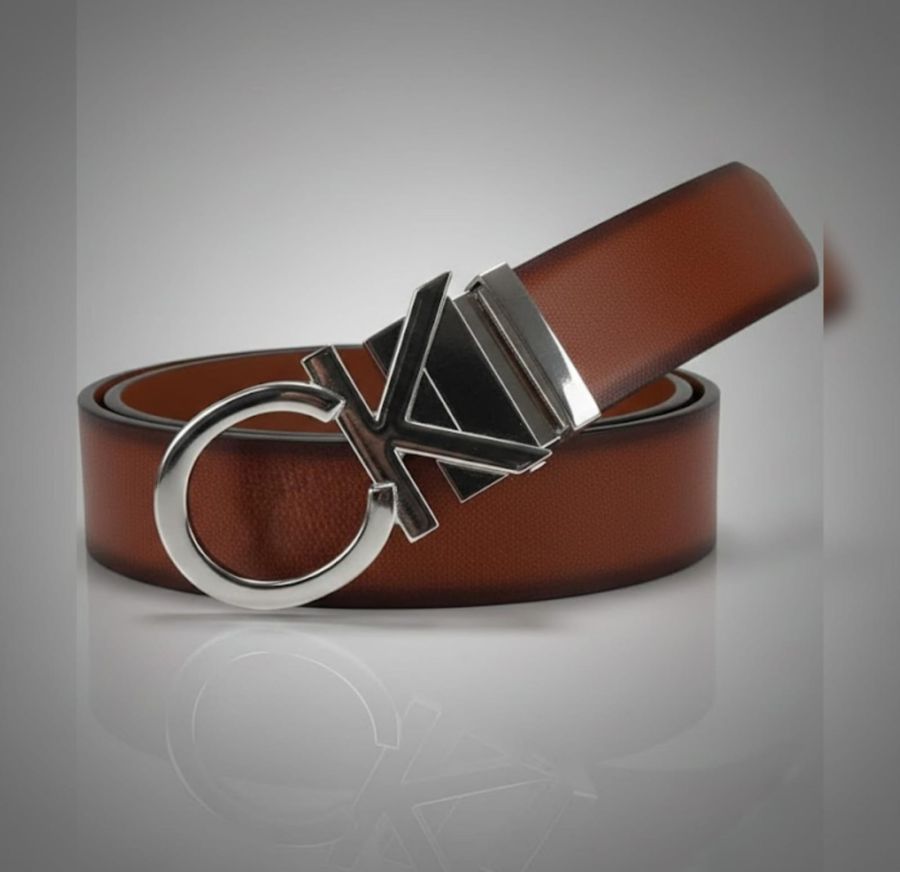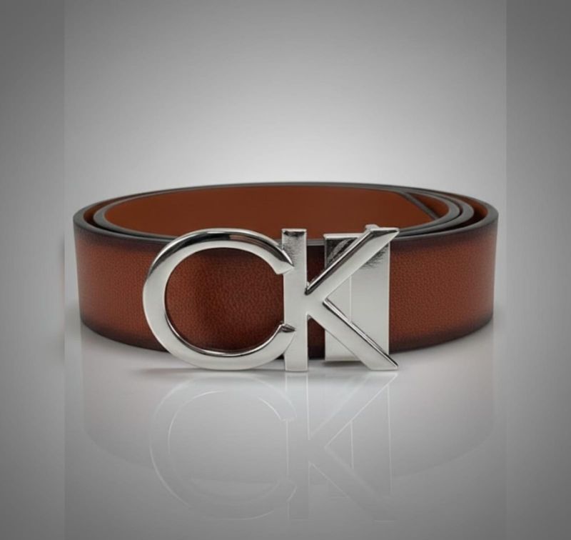 That is a sleek-looking belt! It features the iconic CK monogram buckle, synonymous . The cognac/brown leather with the polished silver-tone hardware makes for a very versatile accessory that works well for both "smart-casual" and semi-formal looks.