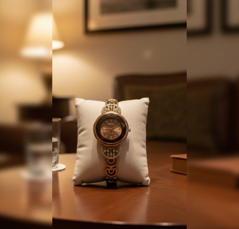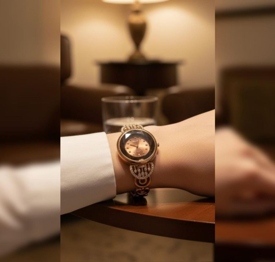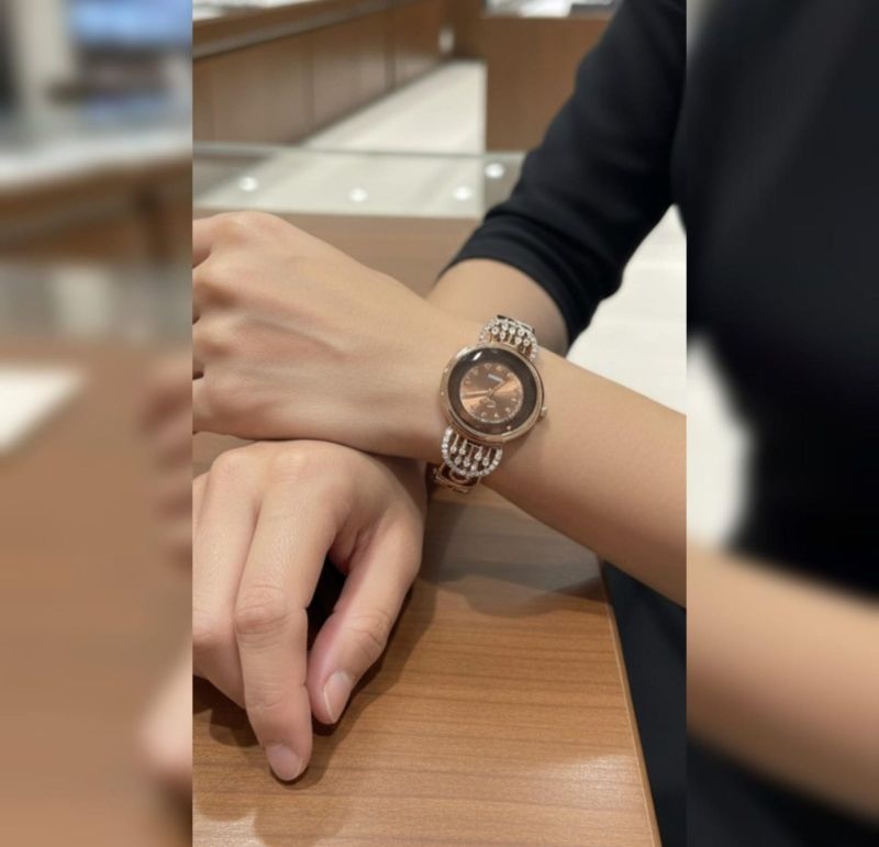 Elevate your wristwear with this exquisite fusion of fine jewelry and precision timekeeping. Featuring a rich rose-gold finish and a deep chocolate-bronze dial, this watch is defined by its unique architectural lugs encrusted with shimmering pavé crystals.