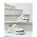 Short Description: Stay shining with these white sneakers accented with silver glitter hearts and "LOVE" branding. The design includes a subtle gold-line detail on the sole and hidden heart patterns on the bottom.