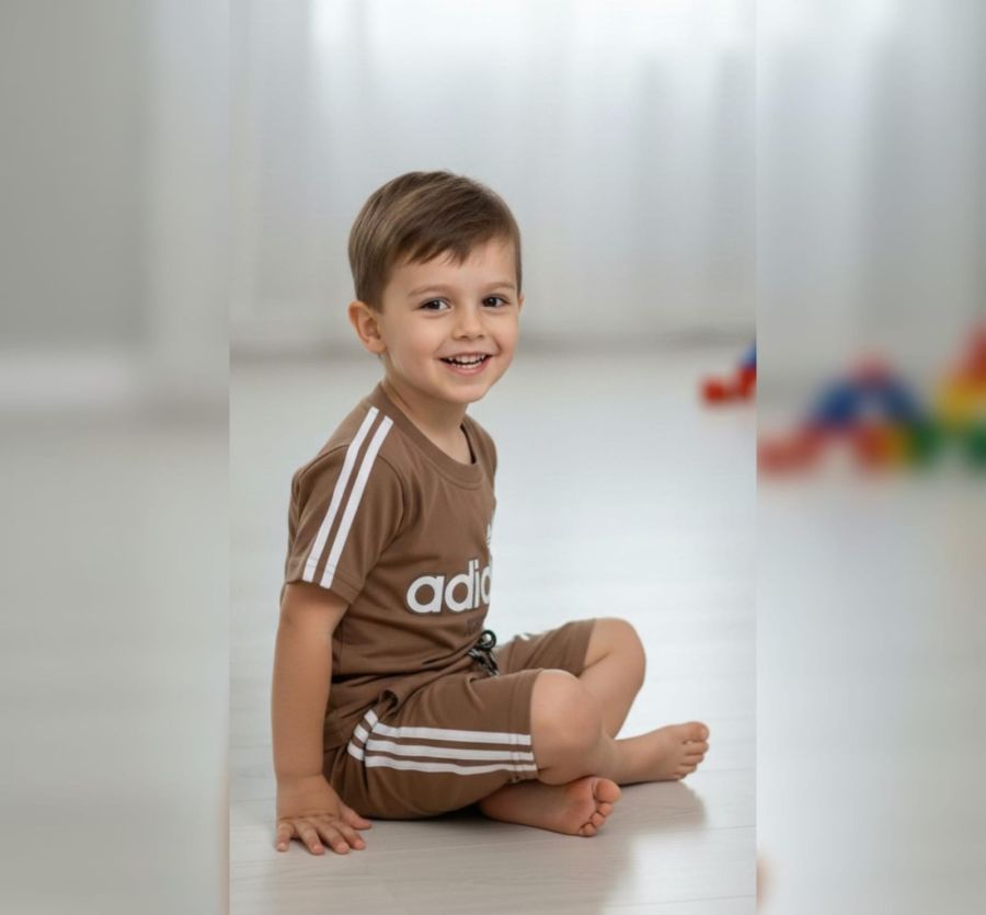 Dress your newborn in this stylish and comfortable coordinated set. This duo is crafted from soft, high-quality fabric designed to be gentle on infant skin while providing a trendy, athletic aesthetic. The neutral tan color makes it a versatile choice for any casual occasion.