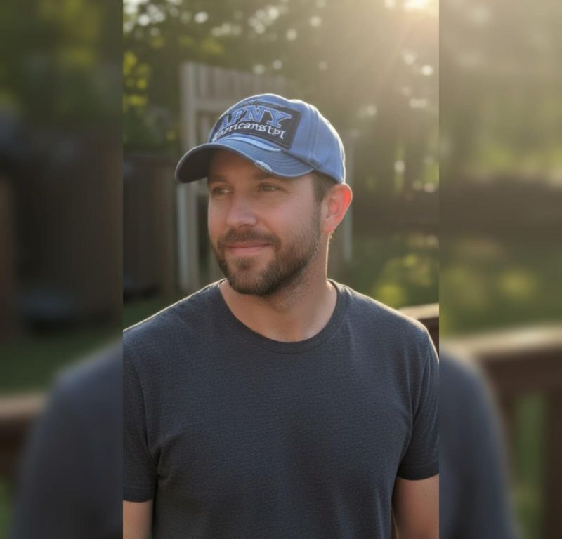 Color Palette: It uses a nice gradient of blues—a lighter sky blue for the crown and a deeper navy/slate blue for the brim.
