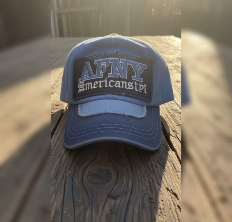 The Patch: The main feature is a large rectangular patch with "AFNY" in bold, collegiate-style lettering. Below it, the word "Americanstyl" (likely a stylized version of "American Style") is written in a classic Gothic or Old English font.