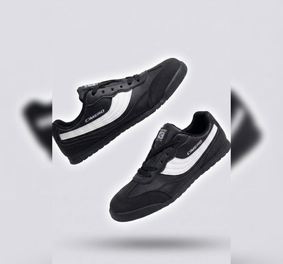 Dominate the streets with the Cimero Stealth-Runners, a high-performance footwear choice for those who value a sharp, minimalist aesthetic. These sneakers feature a premium Jet Black matte upper with soft suede-textured overlays on the toe and heel for added durability and style.