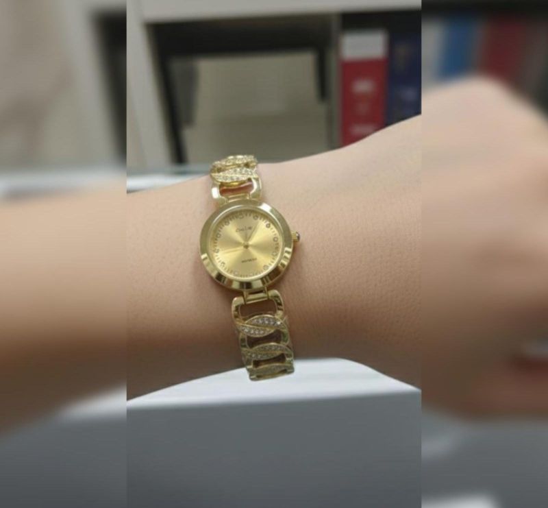 Elevate your wristwear with this stunning Jewelry-Inspired Gold Watch. Designed for the woman who loves to shine, this timepiece features a brilliant champagne-gold finish and a unique, crystal-embellished chain link strap.