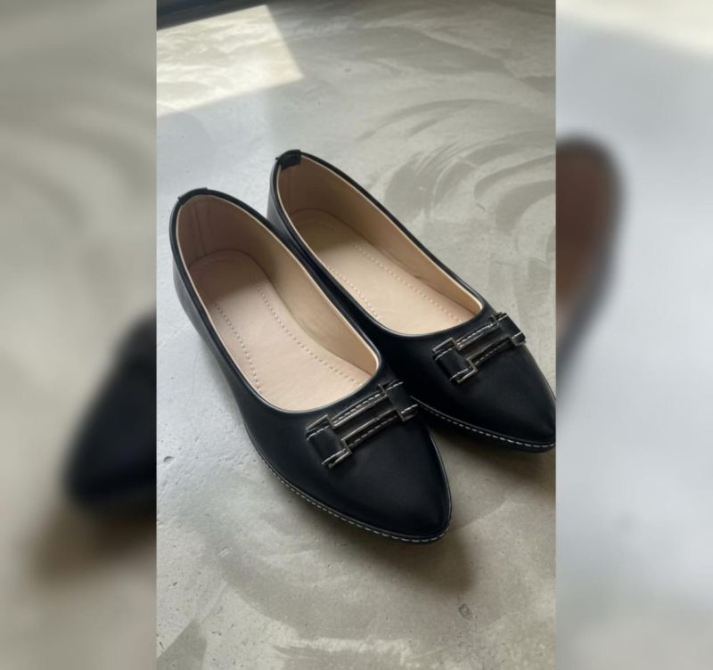 A staple for any professional wardrobe, these Midnight Black flats feature a sleek pointed-toe silhouette that elongates the leg for a polished look. The design is elevated by a signature metallic bridge buckle on the vamp with contrast white stitching for a high-end, tailored finish. Built with a smooth interior lining and a cushioned footbed, these shoes offer a seamless transition from the boardroom to evening social events.