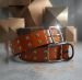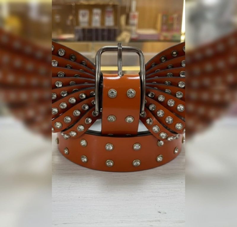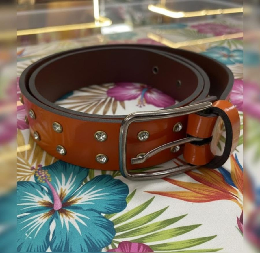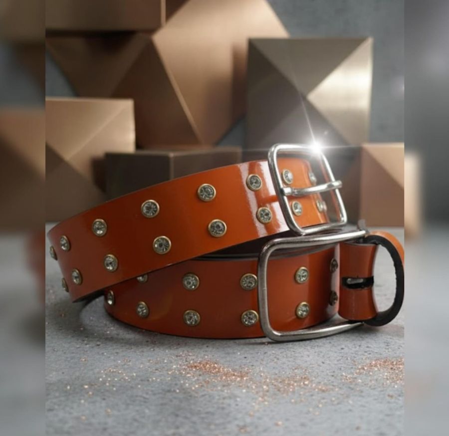This is a wide-strap fashion belt characterized by its bold color and decorative hardware. It is designed to be a focal point of an outfit, likely intended for casual or festival wear.