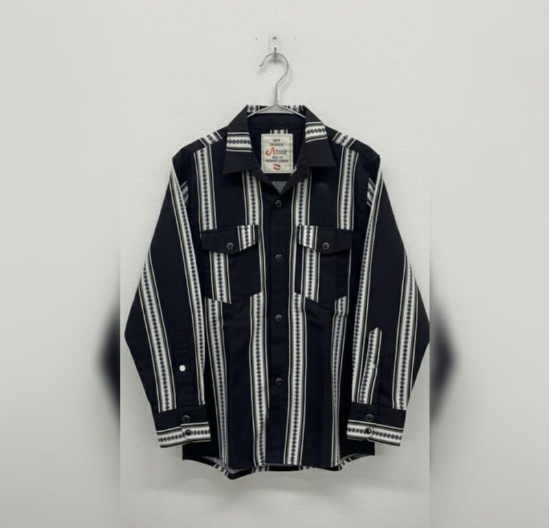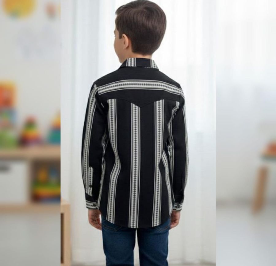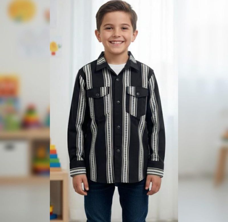 This is a sharp-looking piece! This shirt features a heavy Western-workwear aesthetic with a distinct vertical pattern. It’s the kind of rugged yet stylish top that works perfectly for a "mini-me" vintage look.