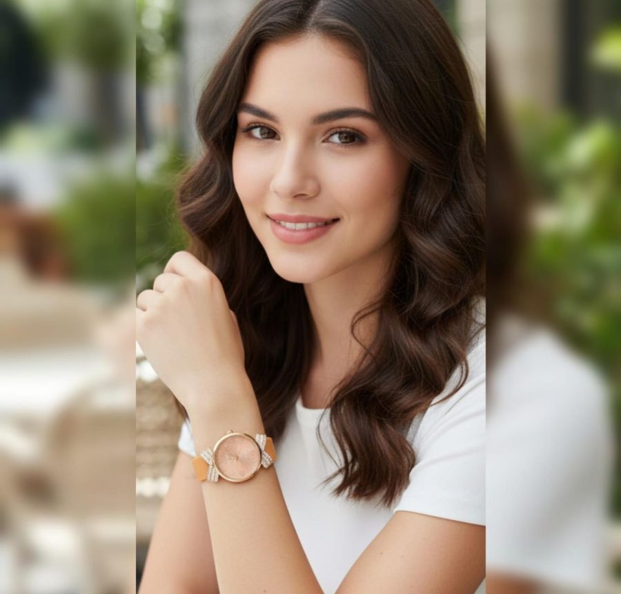 The Lugs: Those crystal-encrusted "X" or bow-shaped lugs are the standout feature. They give it a high-fashion, jewelry-like aesthetic rather than just a functional timepiece.