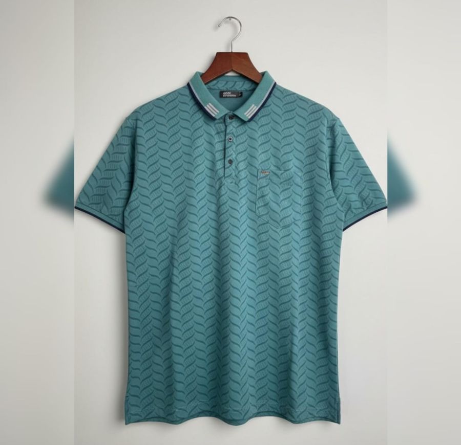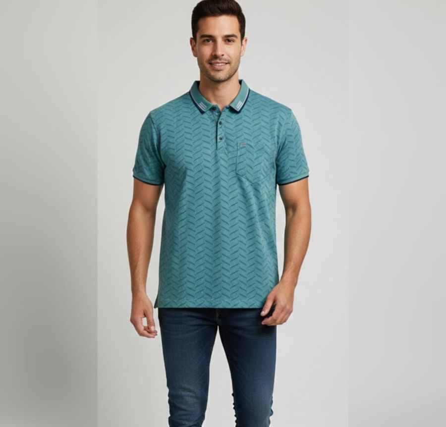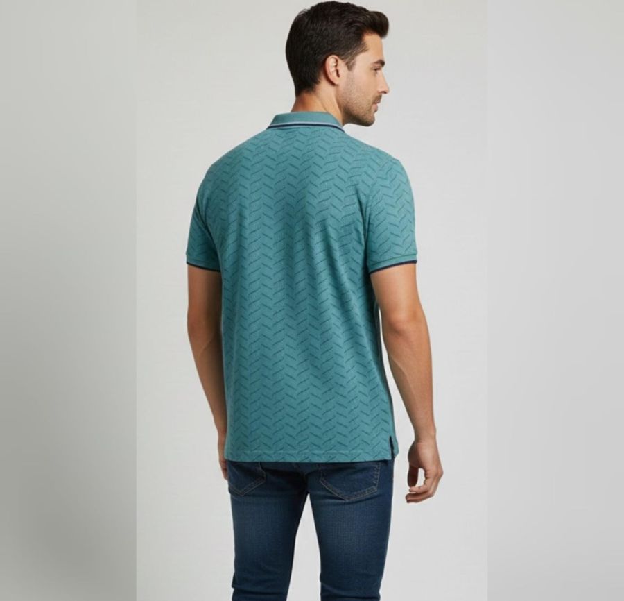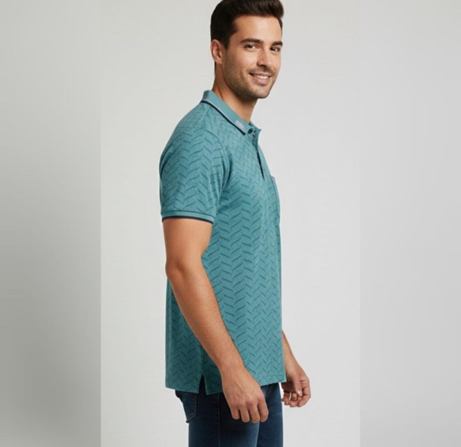 Define your style with the Teal Wave Textured Polo. This premium garment is presented in a deep teal hue, adorned with a sophisticated all-over wave-like geometric pattern that adds depth and visual interest.