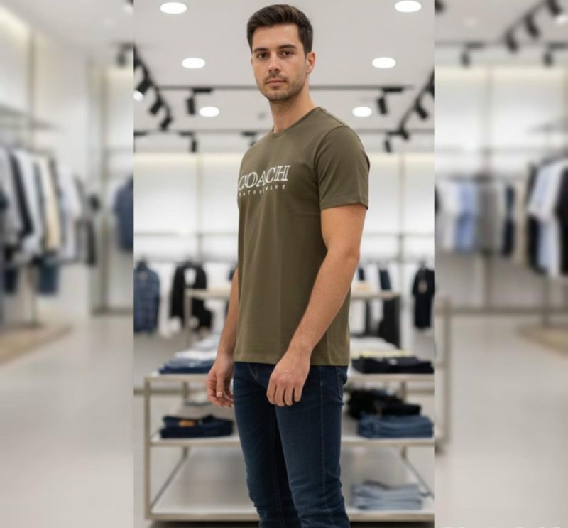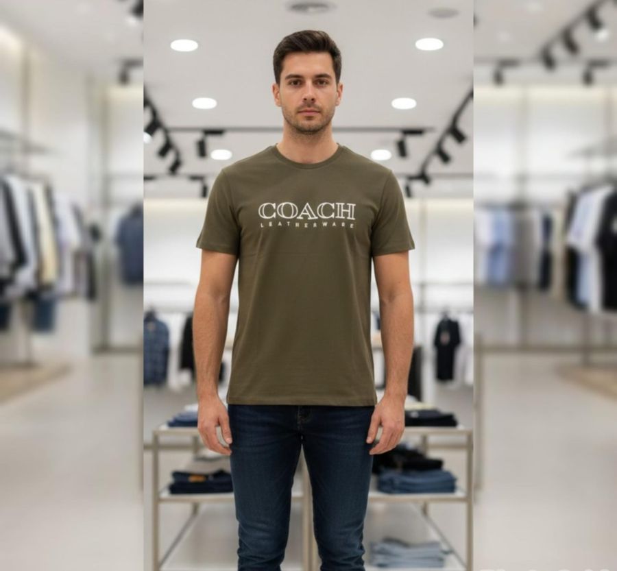 That’s a sharp-looking T-shirt. The olive/army green shade is a versatile neutral that works well year-round, and the "Coach Leatherware" branding gives it a nice heritage feel.